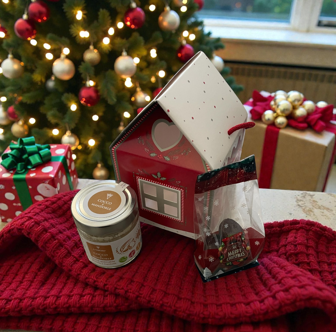 Box Natalizio cioccolatini Extra 75%, Crema spalmabile Cocco & Mandorle